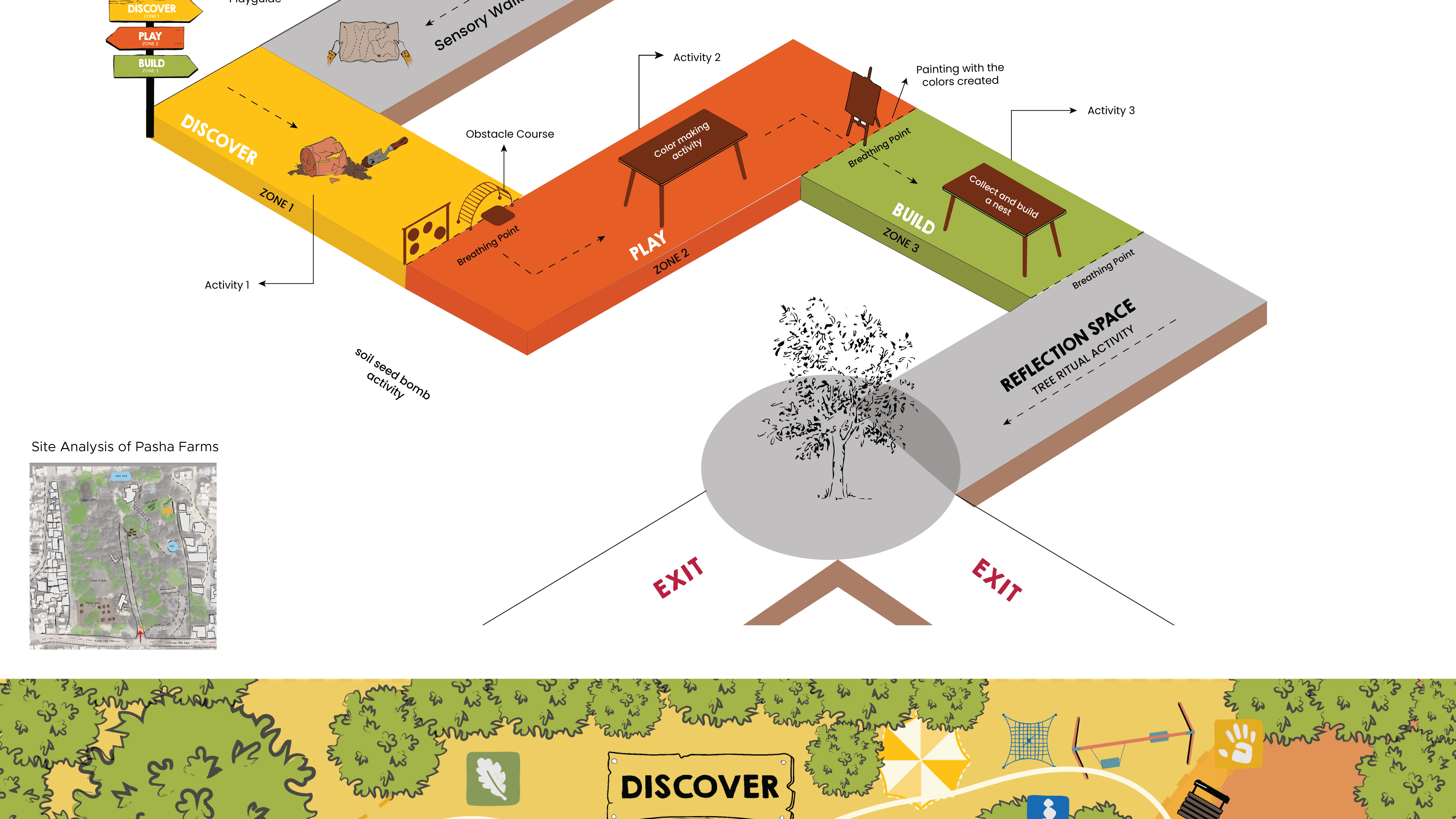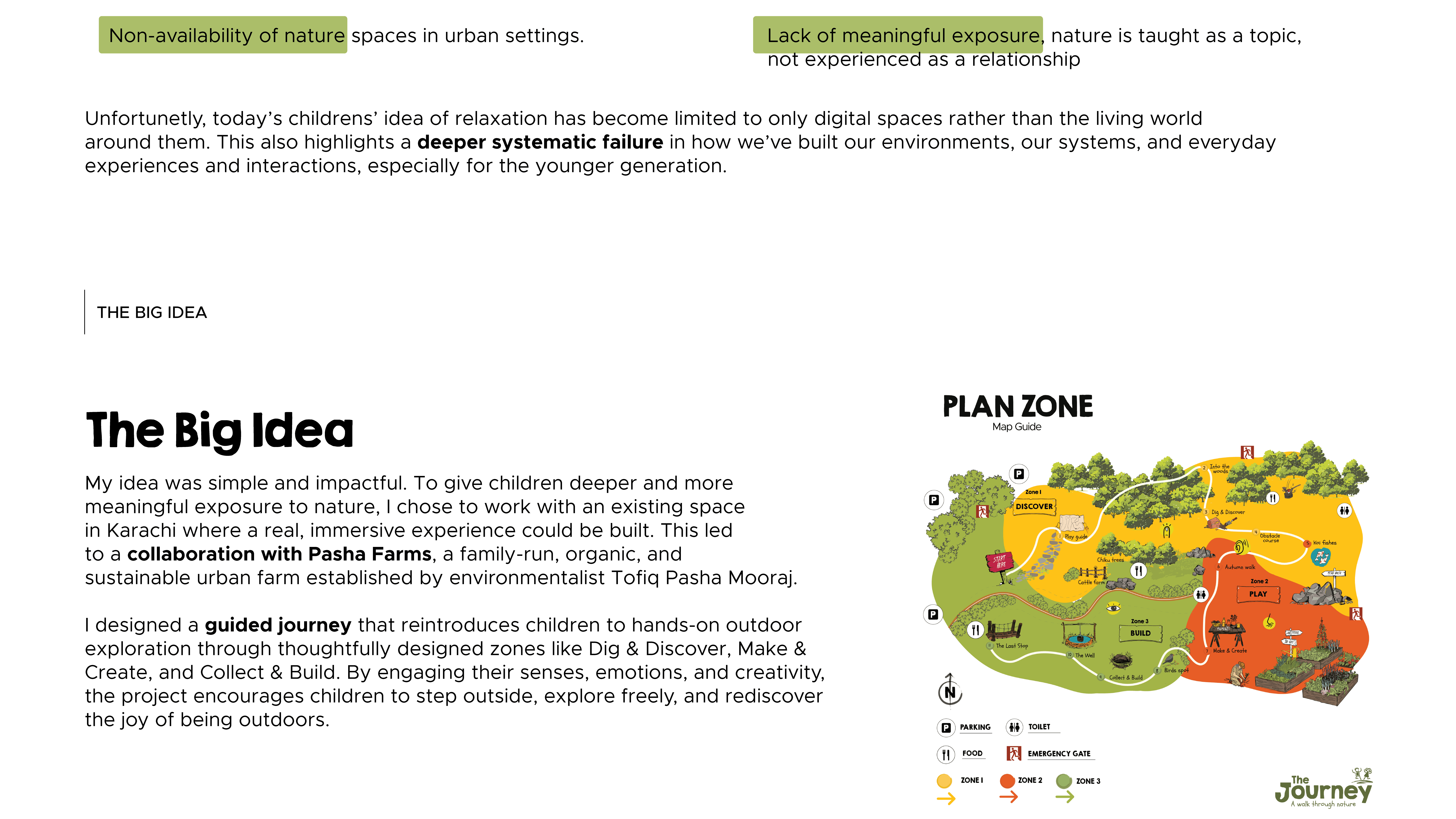 “The Journey” is a hybrid experiential design project that blends outdoor exploration with digital interactions, developed through collaborations with an educational institution and a nature-based site called "Pasha Farms", based in Karachi to encourage children’s connection with the outdoors.
